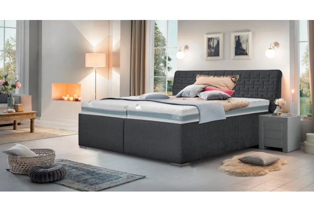 Elegantní dvoulůžková postel o velikosti 180×200 cm zaujme geometricky prošívaným čelem, které působí útulně a trendy. Očalouněna příjemně měkkou látkou v barvě antracitová tmavě šedá. Postel je vybavena lamelovými rošty s funkcí polohování a objemnými úložnými prostory, do kterých můžete uložit třeba lůžkoviny anebo sezónní věci.
