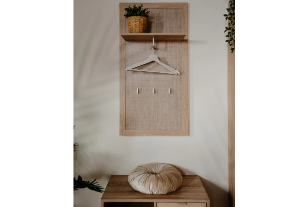 Předsíňový šatní panel z kolekce Bali – vytvořte si útulný a zároveň krásně zařízený domov v přírodním stylu. Atraktivní nábytek ve světlých tónech dřevodekoru dub sonoma spolu s úžasnou imitací lýkového výpletu dodá vašemu interieru příjemně hřejivou atmosféru.