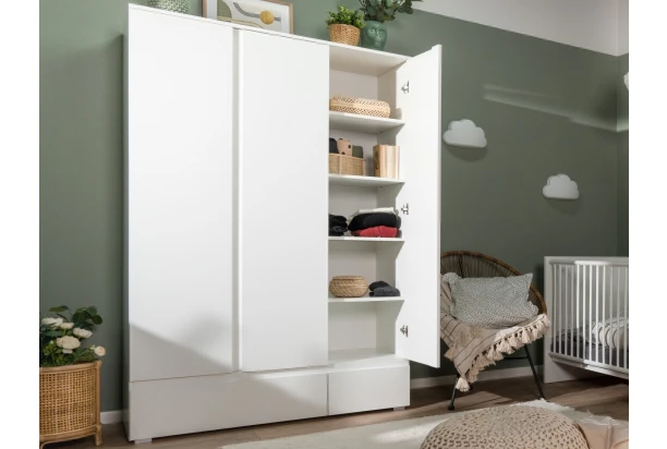 Šatní skříň o šířce 122 cm z programu Image – minimalistický design nábytku je zcela univerzální a hodí do každého moderního interieru. Tato skříň obsahuje zásuvky a za otočnými dveřmi najdete police i šatní tyče.