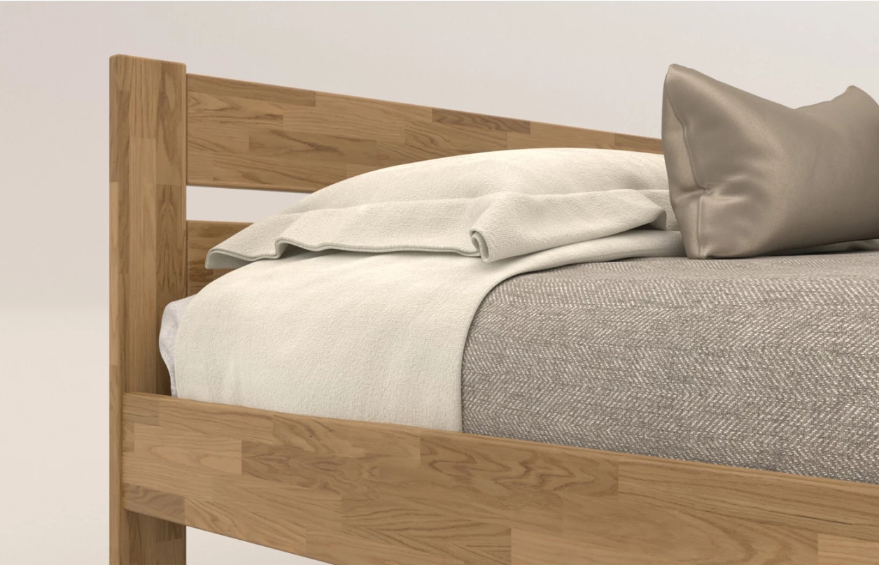 - rohové spoje postelového rámu: tradiční a velice pevné rohové spojení systémem závrtné matice a šroubového táhla s přídavnými kolíky – takové rohové spojení u celomasivní postele lze právem považovat za nejpevnější a nejodolnější vůči dynamickému zatížení postele