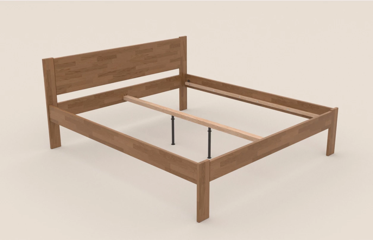- rohové spoje postelového rámu: tradiční a velice pevné rohové spojení systémem závrtné matice a šroubového táhla s přídavnými kolíky – takové rohové spojení u celomasivní postele lze právem považovat za nejpevnější a nejodolnější vůči dynamickému zatížení postele