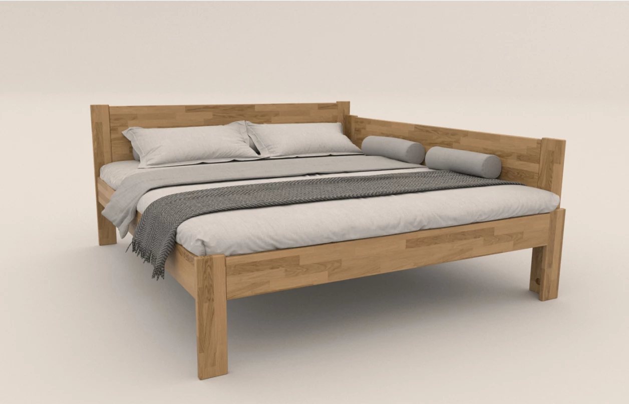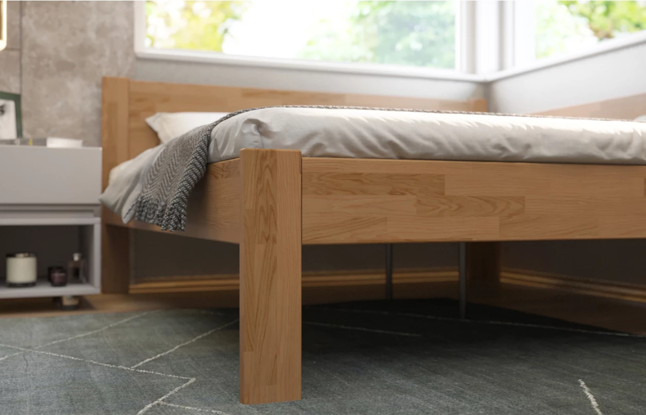 - rohové spoje postelového rámu: tradiční a velice pevné rohové spojení systémem závrtné matice a šroubového táhla s přídavnými kolíky – takové rohové spojení u celomasivní postele lze právem považovat za nejpevnější a nejodolnější vůči dynamickému zatížení postele