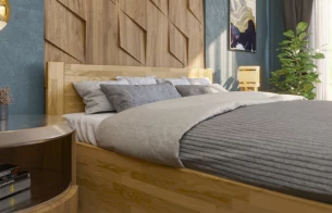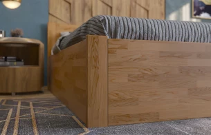 - rohové spoje postelového rámu: tradiční a velice pevné rohové spojení systémem závrtné matice a šroubového táhla s přídavnými kolíky – takové rohové spojení u celomasivní postele lze právem považovat za nejpevnější a nejodolnější vůči dynamickému zatížení postele
