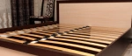 - rohové spoje postelového rámu: tradiční a velice pevné rohové spojení systémem závrtné matice a šroubového táhla s přídavnými kolíky – takové rohové spojení u celomasivní postele lze právem považovat za nejpevnější a nejodolnější vůči dynamickému zatížení postele