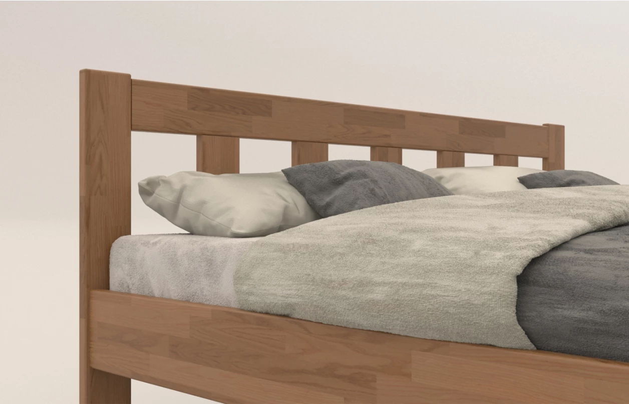 - rohové spoje postelového rámu: tradiční a velice pevné rohové spojení systémem závrtné matice a šroubového táhla s přídavnými kolíky – takové rohové spojení u celomasivní postele lze právem považovat za nejpevnější a nejodolnější vůči dynamickému zatížení postele