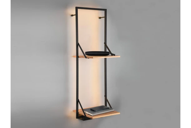 Elegantní závěsný regál s vestavěným LED osvětlením má černý kovový rám a 2 dřevěné desky, které poskytnou dostatek místa pro Vaše oblíbené dekorace a další bytové doplňky. Nástěnná police má moderní nadčasový design, který lze snadno začlenit do jakéhokoli stylu bydlení. Integrované podsvícení vytvoří příjemnou a útulnou atmosféru v chodbě, obývacím i pracovním prostoru.