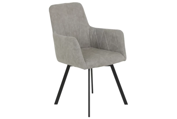 Atraktivně prošitá jídelní židle s otočným sedákem má tvar malého křesílka a v prostoru jídelny působí stylově. Pohodlně tvarovaný sedák je očalouněn příjemně měkkou látkou ve vintage optice kůže v odstínu šedo-béžová.