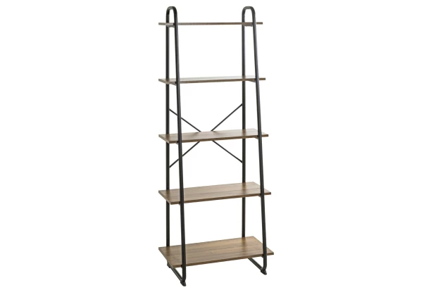 Regál o výšce 169 cm v kombinaci černého kovu a dubového dřevodekoru se hodí do moderního prostoru obýváku i pracovny.