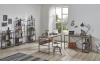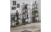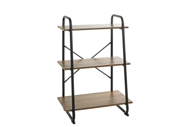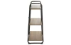 Regál o výšce 93 cm v kombinaci černého kovu a dubového dřevodekoru se hodí do moderního prostoru obýváku i pracovny.
