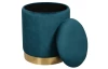 Petrolejový taburet se zlatým kovovým podstavcem snadno doplní interier v trendovém stylu. Očalouněn příjemnou sametovou látkou. Pod sedákem najdete malý úložný prostor, kam uschováte jakékoliv drobnosti.