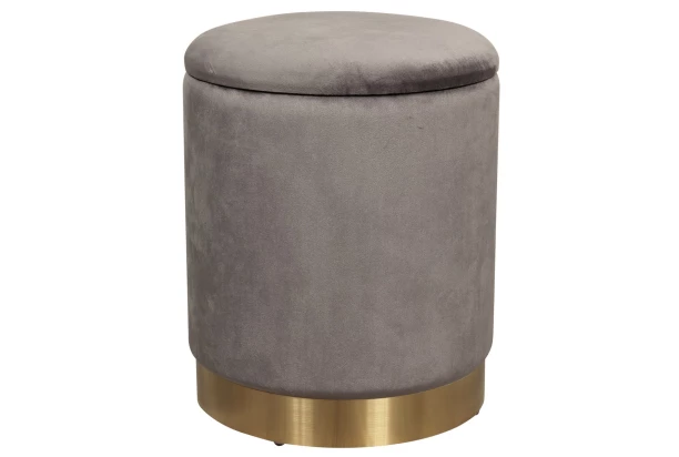 Šedý taburet se zlatým kovovým podstavcem snadno doplní interier v trendovém stylu. Očalouněn příjemnou sametovou látkou. Pod sedákem najdete malý úložný prostor, kam uschováte jakékoliv drobnosti.