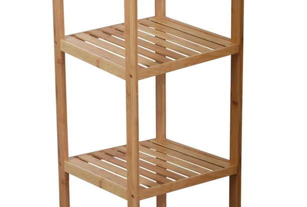 Univerzální dřevěný regál s 5 policemi můžete využít kdekoliv v interieru – v koupelně, předsíni i třeba obýváku. Dřevěný materiál dodá interieru útulnou atmosféru.