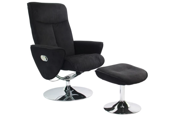 TV křeslo s podnožkou poslouží nejen pro sledování televize, ale i během oblíbené četby nebo relaxace. Snadno lze nastavit sklon opěradla. V kombinaci lesklého kovu a černé látky.