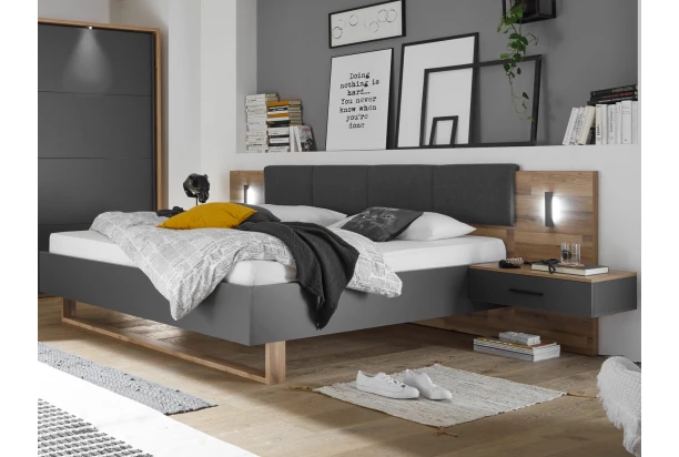 Postel s nočními stolky Rivoli 180x200 cm, s osvětlením, dub/grafit