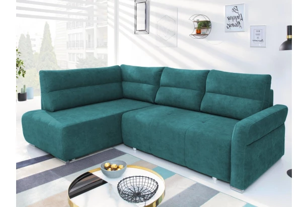 Prostorná rohová sedačka s pohodlně tvarovanými polštáři poslouží prakticky v malém i velkém bytě. Očalouněna látkou v barvě petrolejová a vytváří levý roh. Díky rozkládací funkci na lůžko o velikosti 140×210 cm je vhodná i na trvalé spaní pro dvě osoby. Může být tedy například vhodným řešením do malých bytů, kde poslouží ve dne jako rohová sedací souprava a v noci jako lůžko pro komfortní spaní, které lze během chvilky snadno rozložit.