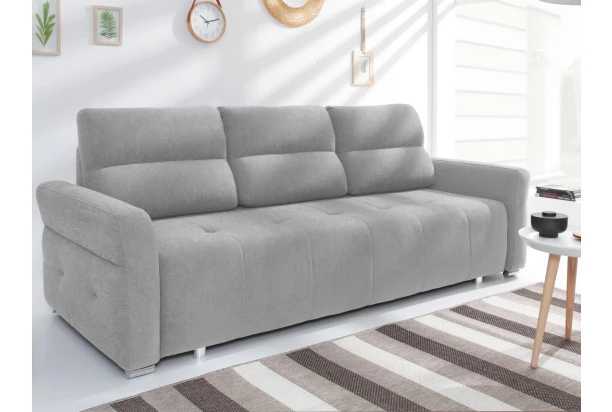 Prostorná pohovka s pohodlně tvarovanými polštáři poslouží prakticky v malém i velkém bytě. Očalouněna látkou v barvě světle šedá. Díky rozkládací funkci na lůžko o velikosti 138×200 cm je vhodná i na trvalé spaní. Může být tedy například vhodným řešením do malých bytů, kde poslouží ve dne jako pohovka a v noci jako lůžko pro komfortní spaní, které lze během chvilky snadno rozložit.