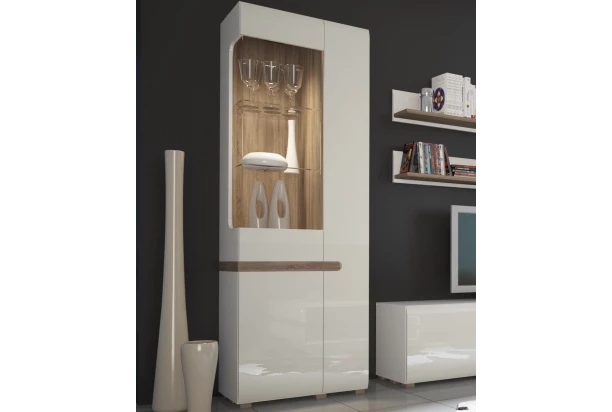 Vysoká vitrína Linate, bílý lesk/dub, levá