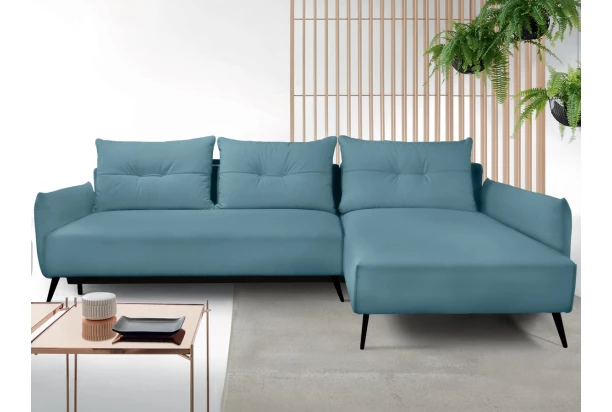 Dopřejte si každodenní příjemné pohodlí a buďte jednoduše trendy. Pohodlná rohová sedací souprava na černých kovových nohách působí elegantně a vzdušně v každém prostoru obýváku. Očalouněna měkkou látkou v odstínu tyrkysová. Polštářová optika bočních područek šetří okolní místo a sedačka tak snadno rozměrově pasuje do mnoha interierů. Rohová sedačka s otomanem vytváří pravý roh.