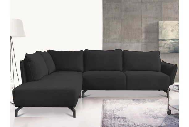 Atraktivní rohová sedací souprava je inspirována módními trendy. Elegantní design zaoblených tvarů, polštářová optika i kvalitní zpracování. Sedačka s bočním otomanem vytváří levý roh a nabízí dostatek prostoru pro vaši každodenní pohodu. Užívejte si tak komfortně laděné sezení, které navíc zpříjemňuje měkká velurová sametová látka v odstínu antracitová šedá. Černé kovové nohy poskytují sedačce stabilní základ a navíc dodávají obývacímu prostoru pocit vzdušnosti.