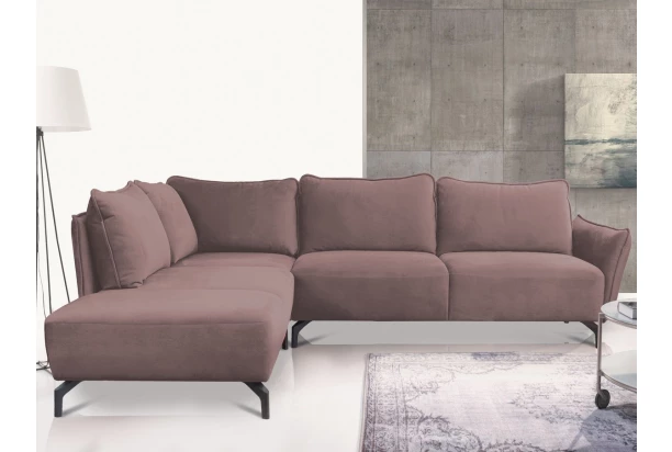 Atraktivní rohová sedací souprava je inspirována módními trendy. Elegantní design zaoblených tvarů, polštářová optika i kvalitní zpracování. Sedačka s bočním otomanem vytváří levý roh a nabízí dostatek prostoru pro vaši každodenní pohodu. Užívejte si tak komfortně laděné sezení, které navíc zpříjemňuje měkká velurová sametová látka v odstínu starorůžová. Černé kovové nohy poskytují sedačce stabilní základ a navíc dodávají obývacímu prostoru pocit vzdušnosti.