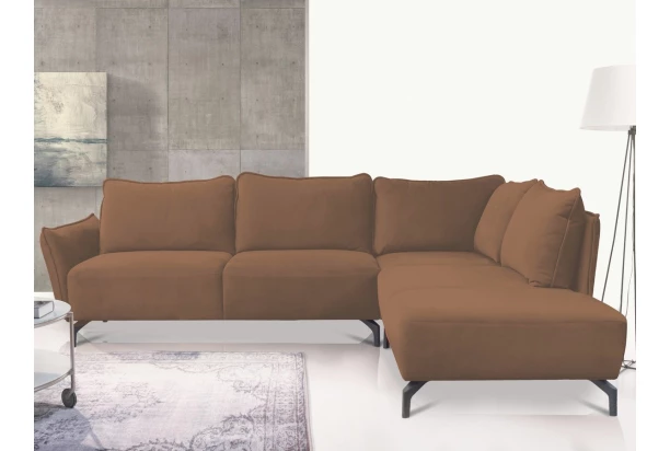 Atraktivní rohová sedací souprava je inspirována módními trendy. Elegantní design zaoblených tvarů, polštářová optika i kvalitní zpracování. Sedačka s bočním otomanem vytváří pravý roh a nabízí dostatek prostoru pro vaši každodenní pohodu. Užívejte si tak komfortně laděné sezení, které navíc zpříjemňuje měkká velurová sametová látka v odstínu hnědá whiskey. Černé kovové nohy poskytují sedačce stabilní základ a navíc dodávají obývacímu prostoru pocit vzdušnosti.