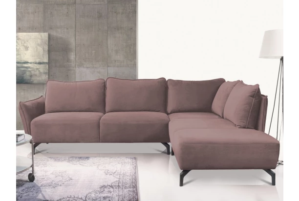 Atraktivní rohová sedací souprava je inspirována módními trendy. Elegantní design zaoblených tvarů, polštářová optika i kvalitní zpracování. Sedačka s bočním otomanem vytváří pravý roh a nabízí dostatek prostoru pro vaši každodenní pohodu. Užívejte si tak komfortně laděné sezení, které navíc zpříjemňuje měkká velurová sametová látka v odstínu starorůžová. Černé kovové nohy poskytují sedačce stabilní základ a navíc dodávají obývacímu prostoru pocit vzdušnosti.