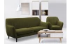 - potah: látka Monolith 38 – kvalitní látka v elegantní lesklé sametové optice, barva mechová zelená (složení: 100% polyester, otěruvzdornost: 45.000 cyklů, gramáž: 330 g/m2, speciální vlastnosti: zvýšená voděodolnost – tkanina je potažena speciální ochrannou vrstvou, která vytváří hydrofobní povlak, který chrání před rychlým přechodem tekutin – to zabraňuje okamžité absorpci vody skrz tkaninu, čímž se kapalina kondenzuje na povrchu materiálu, díky tomu máte čas použít měkký hadřík nebo papírový ručník k jemnému odfiltrování rozlité kapaliny)