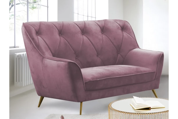 Dvoumístní pohovka s prošitím a knoflíky vnese do interieru nádech luxusu a elegance. Očalouněna sametově hebkou látkou v odstínu starorůžová. Oceníte především velmi komfortní sezení s vysokým opěradlem, které poskytne příjemnou oporu pro vaše záda i hlavu. Kovové nohy ve zlaté barvě působí vzdušně a dotváří noblesní pocit.