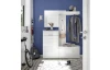 - šatní panel: 1 x horní police, 1 x šatní tyč, 2 x závěsný hák, pro zavěšení na stěnu (zadní 3-bodové zavěšení), nosnost do 5 kg, rozměry: 80×143×37 cm