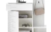 - úložná skříňka/botník: 1 x zásuvka (kovové boční pojezdy), 1 x levé dveře (úložný prostor, 3 x police), rozměry: 60×107×38 cm