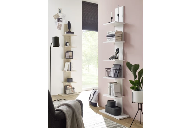 Bílý nástěnný regál s 5 poličkami poslouží pro ukládání jakýchkoliv drobných předmětů nebo dekorací. Díky 50 cm šířce najde své místo téměř v každém prostoru.