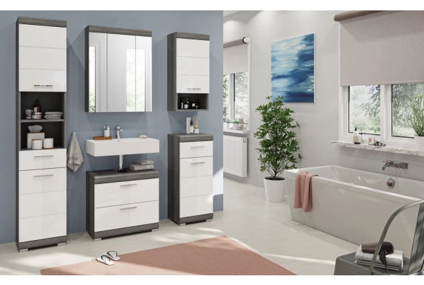Závěsná koupelnová skříňka Scout, šedý dub/bílá lesk