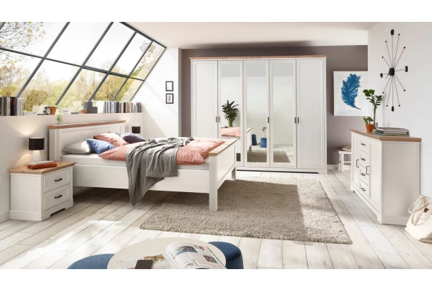 Noční stolek se 2 zásuvkami v provedení bělená pinie s dubovým dřevodekorem z kolekce Jasmin – nábytek v moderním venkovském stylu s důrazem na detail navazuje na tradici útulně zařízeného domova a přímo láká k tomu, abyste si vytvořili prostředí, kde se budete cítit dobře. Kombinujte tak jednotlivé elementy z této řady a vytvořte si stylový rustikální interier s nádechem tradice.