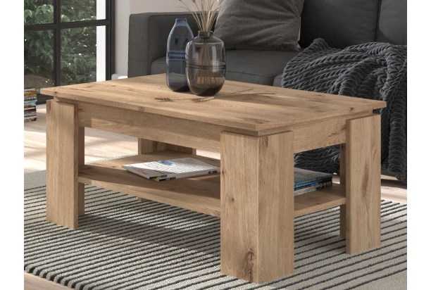 Konferenční stolek se širokými rámy poskytuje dobrou stabilitu a zároveň se univerzálně hodí do jakéhokoliv obýváku. Vyroben v dřevodekoru dub nox. Do spodní odkládací přihrádky můžete odkládat noviny, časopisy, dálkové ovladače nebo třeba dekorace. Díky univerzálnímu stylu bude dobře pasovat jak k moderní, tak i ke klasické sedačce.