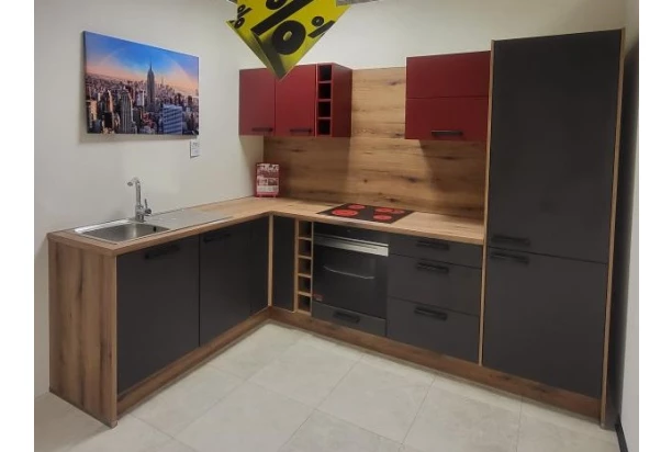 Sestava kuchyně České Budějovice-PN310-vystavený kus,hnědá/červená