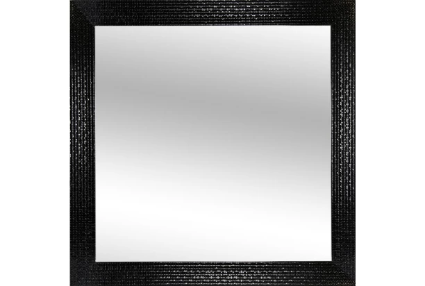 Nástěnné zrcadlo z kolekce Glamour má okrasný černý rám s lesklým strukturovaným povrchem ve vzoru kostiček. Jednoduchý, ale stylový design působí decentně a elegantně. Praktické univerzální zrcadlo skvěle zapadne do moderního interiéru. Rozměr 40×40 cm.