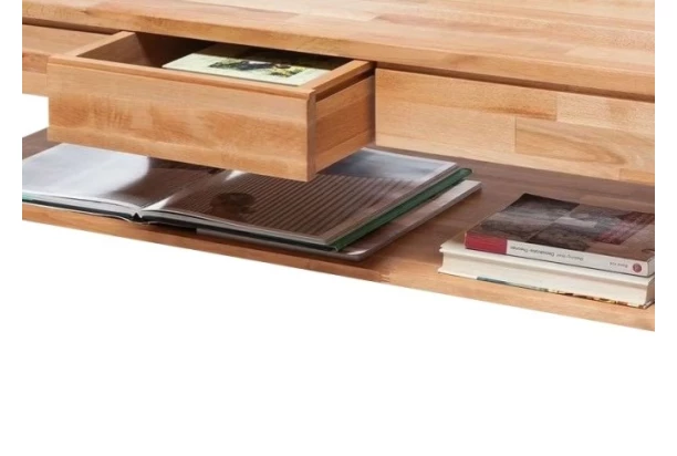 Obdélný konferenční stolek o ploše 115×70 cm s praktickou boční zásuvkou je vyroben z masivního dubového dřeva. Mohutný masivní vzhled dotváří široké nohy, které dodávají stolku výbornou stabilitu. Tento kvalitní stolek si zamilují všichni, kdo mají rádi přírodní materiály a útulnou atmosféru domova.