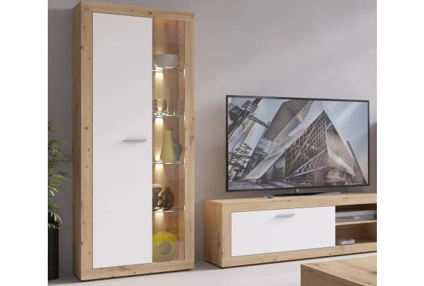 Vitrína Brilon, 78 cm, dub artisan/bílá