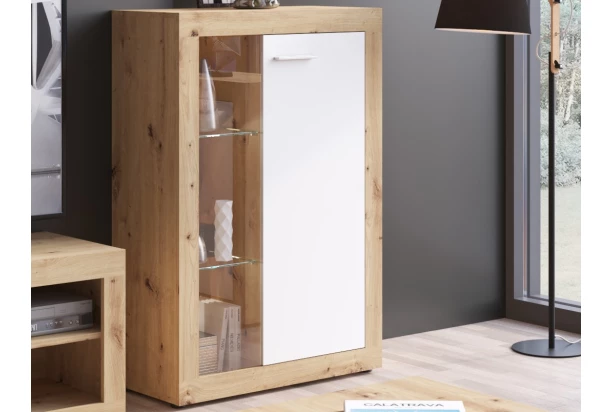 Nízká vitrína Brilon, 78 cm, dub artisan/bílá
