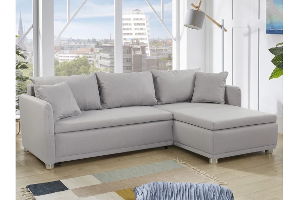 Rohová sedací souprava nejen pro mladé je rozměrově ideální také do malého obýváku. Sedačka s opěrnými polštáři a otomanem lze univerzálně smontovat a tvořit tak pravý anebo levý roh. Případná návštěva může snadno přenocovat díky rozkládací funkci na lůžko. Pod sedákem najdete i úložný prostor, kam lze uschovat lůžkoviny anebo jakékoliv věci sezónní potřeby.