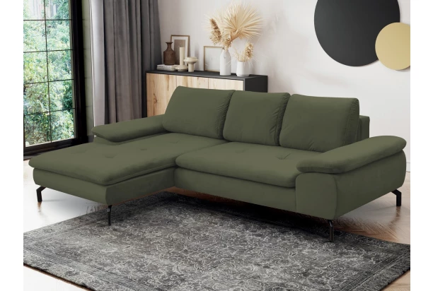 Rohová sedací souprava Vespa na stabilní kovové podnoži působí v interieru vzdušně a rozměrově pasuje i do malého prostoru obýváku. Očalouněna látkou v odstínu špenátová zelená. Pohodlně vypolstrované sedáky a velké polštáře poskytují komfort během každodenního sezení a široký otoman zase prostor pro lenošení. Otoman sedačky vytváří levý roh. Pokud byste chtěli pozvat návštěvu na více dnů, tak skvěle poslouží rozkládací funkce na příležitostné lůžko. Do úložného prostoru pod sedákem můžete ukládat třeba deky, polštáře, vánoční ozdoby anebo například další věci sezónní potřeby.