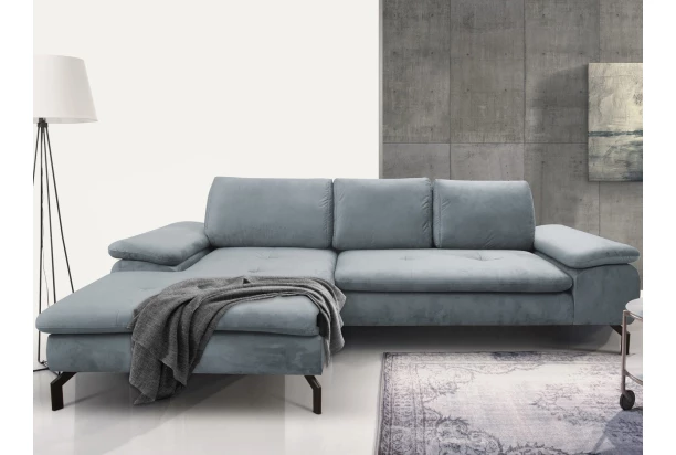 Rohová sedací souprava Vespa na stabilní kovové podnoži působí v interieru vzdušně a rozměrově pasuje i do malého prostoru obýváku. Očalouněna látkou v odstínu šedo-modrá. Pohodlně vypolstrované sedáky a velké polštáře poskytují komfort během každodenního sezení a široký otoman zase prostor pro lenošení. Otoman sedačky vytváří levý roh. Pokud byste chtěli pozvat návštěvu na více dnů, tak skvěle poslouží rozkládací funkce na příležitostné lůžko. Do úložného prostoru pod sedákem můžete ukládat třeba deky, polštáře, vánoční ozdoby anebo například další věci sezónní potřeby.