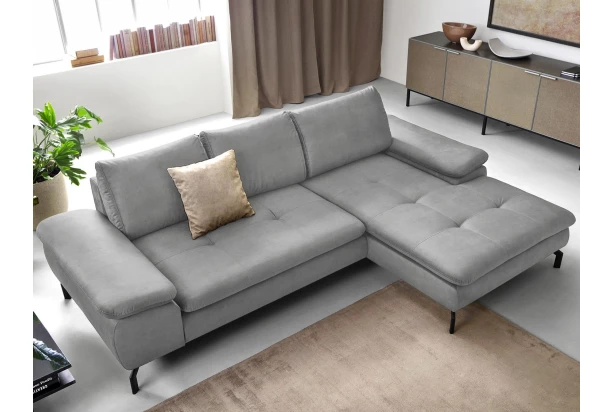 Rohová sedací souprava Vespa, světle šedá látka, pravý roh