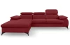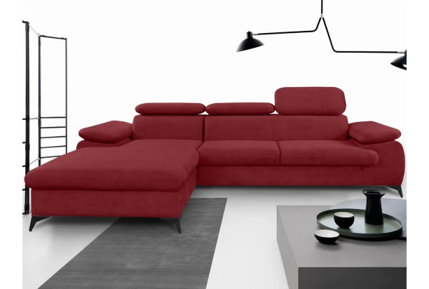 Moderní rohová sedačka Scala poskytuje komfort bez kompromisu v jakkoliv velkém prostoru obýváku. Kromě ideálních rozměrů nabízí komfortně laděné sezení doplněné o zádové opěrky, u kterých si můžete nastavovat sklon a přizpůsobit si tak pohodlí podle sebe. V případě relaxace využijete prostorný otoman, který u sedačky vytváří levý roh. Očalouněna látkou s příjemně měkkou strukturou v odstínu červená. Sedací souprava je také vybavena úložným prostorem – snadno přístupný z přední strany otomanu. Černé kovové nohy poskytují stabilitu a díky jejich správné výšce lze pod sedačkou použít i robotický vysavač. Tato nadčasová sedačka je prostě přizpůsobena standardům dnešní doby.