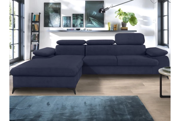 Moderní rohová sedačka Scala poskytuje komfort bez kompromisu v jakkoliv velkém prostoru obýváku. Kromě ideálních rozměrů nabízí komfortně laděné sezení doplněné o zádové opěrky, u kterých si můžete nastavovat sklon a přizpůsobit si tak pohodlí podle sebe. V případě relaxace využijete prostorný otoman, který u sedačky vytváří levý roh. Očalouněna látkou s příjemně měkkou strukturou v odstínu tmavě modrá. Sedací souprava je také vybavena úložným prostorem – snadno přístupný z přední strany otomanu. Černé kovové nohy poskytují stabilitu a díky jejich správné výšce lze pod sedačkou použít i robotický vysavač. Tato nadčasová sedačka je prostě přizpůsobena standardům dnešní doby.