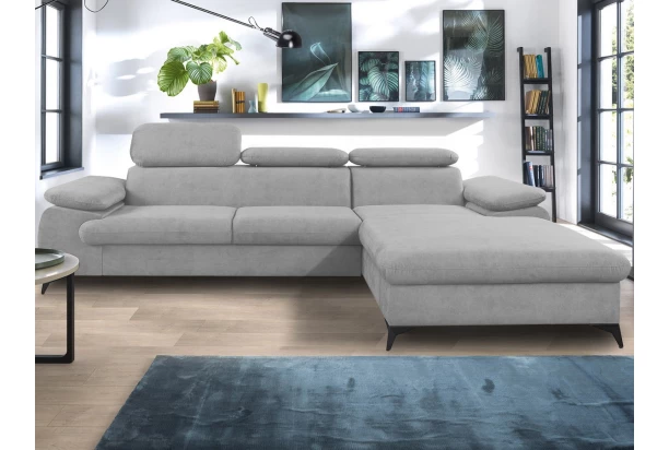 Moderní rohová sedačka Scala poskytuje komfort bez kompromisu v jakkoliv velkém prostoru obýváku. Kromě ideálních rozměrů nabízí komfortně laděné sezení doplněné o zádové opěrky, u kterých si můžete nastavovat sklon a přizpůsobit si tak pohodlí podle sebe. V případě relaxace využijete prostorný otoman, který u sedačky vytváří pravý roh. Očalouněna látkou s příjemně měkkou strukturou v odstínu stříbrná světle šedá. Sedací souprava je také vybavena úložným prostorem – snadno přístupný z přední strany otomanu. Černé kovové nohy poskytují stabilitu a díky jejich správné výšce lze pod sedačkou použít i robotický vysavač. Tato nadčasová sedačka je prostě přizpůsobena standardům dnešní doby.