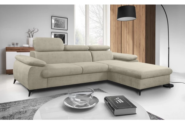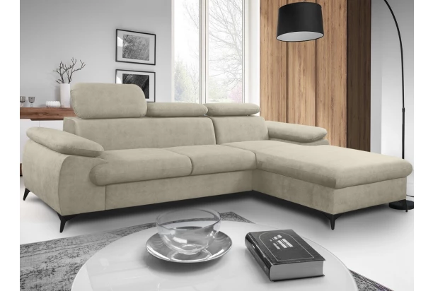 Moderní rohová sedačka Scala poskytuje komfort bez kompromisu v jakkoliv velkém prostoru obýváku. Kromě ideálních rozměrů nabízí komfortně laděné sezení doplněné o zádové opěrky, u kterých si můžete nastavovat sklon a přizpůsobit si tak pohodlí podle sebe. V případě relaxace využijete prostorný otoman, který u sedačky vytváří pravý roh. Očalouněna látkou s příjemně měkkou strukturou v odstínu béžová. Sedací souprava je také vybavena úložným prostorem – snadno přístupný z přední strany otomanu. Černé kovové nohy poskytují stabilitu a díky jejich správné výšce lze pod sedačkou použít i robotický vysavač. Tato nadčasová sedačka je prostě přizpůsobena standardům dnešní doby.