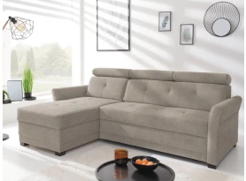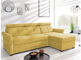 Rohová sedací souprava Harris je ideální volbou do malého prostoru a univerzálním stylem pasuje do každého obýváku. Potažena příjemnou látkou v barvě námořnická tmavě modrá, pohodlné vypolstrování doplňují polohovatelné opěrky pro individuální nastavení komfortu. S bočním otomanem tvoří sedačka pravý roh. Úložný prostor a rozklad na lůžko plní praktickou roli, lůžko můžete využít také pro trvalé spaní.