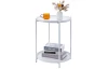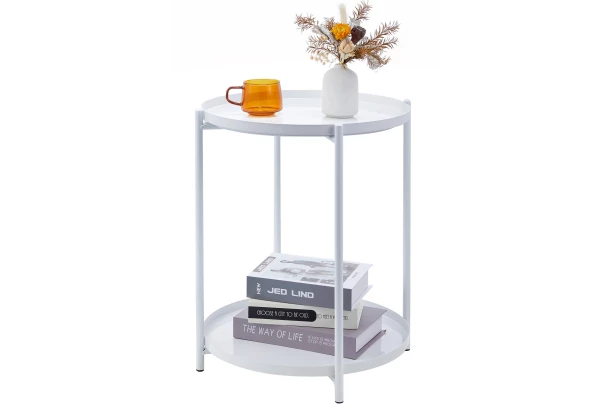 Praktický bílý odkládací stolek je vyroben z kovu a dobře poslouží vedle sedačky nebo kdekoliv v rohu místnosti pro umístění lampičky, časopisů, dekorací anebo i jako stolek na kytky.
