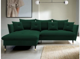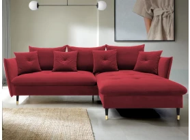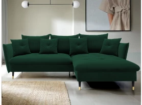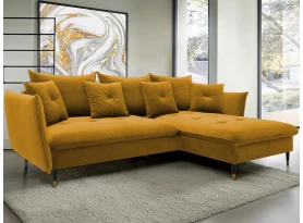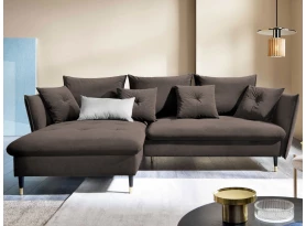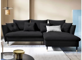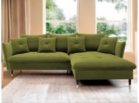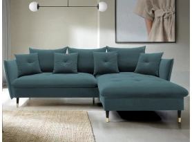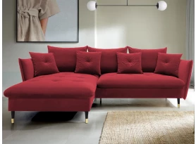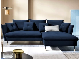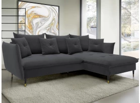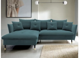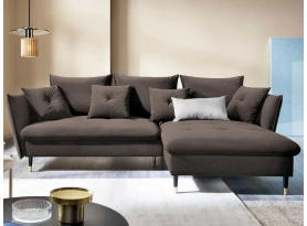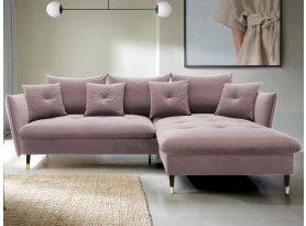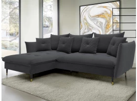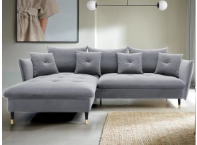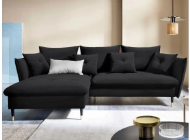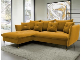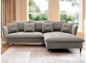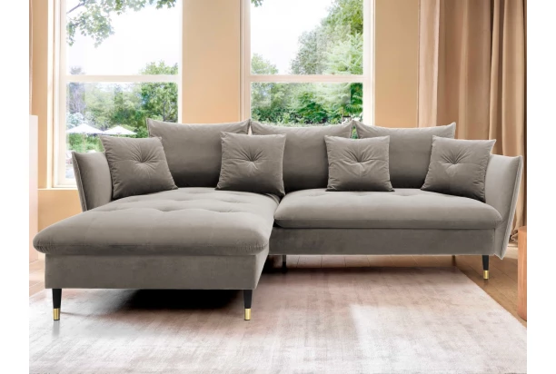 Rohová sedací souprava v elegantním glamour stylu působí pohodlně – a to nejen na pohled, pohodlná totiž opravdu je. Příjemně vypolstrované sezení, velké polštáře a relaxační otoman si snadno oblíbíte. Očalouněna látkou sametového vzhledu v odstínu béžová. Elegantní design navíc podtrhují stabilní černo-zlaté kovové nohy, pod které se snadno dostane třeba i váš robotický vysavač. Provedení sedačky s otomanem vytváří levý roh. Pod sedákem je ukrytý praktický ukládací prostor a sedačku lze využít i pro příležitostné spaní díky rozkládací funkci. Svými rozměry snadno pasuje do téměř každého rohu obýváku, kde vytvoří útulné domácí prostředí.